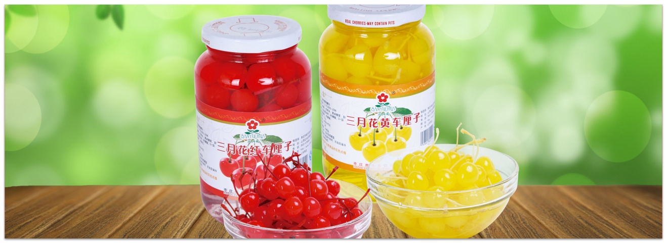 主要有玻璃瓶,易拉罐,軟包裝等30多種規格罐形,水果罐頭有:車里子,煙臺大櫻桃,邊桃,糖水葡萄,什錦珍果,糖水黃桃,白桃,雪梨,草莓,菠蘿,蜜橘等;蔬菜食用菌罐頭有:馬蹄,筍尖,蘆筍,白靈菇,蘑菇等40多個品種.公司引進國外先進的系列專用設備,開發的真正不褪色櫻桃,成為什錦類罐頭生產廠家的信賴產品.
